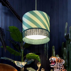 Unleash the vibrant spirit of the carnival with our captivating Fringed Helter Skelter Drum Lampshades. Inspired by the whimsical allure of the circus and the thrill of the iconic ride, these stunning shades will transform any space into a dazzling, inspirational haven. Crafted with meticulous attention to detail, each lampshade features a lively, colour-clashing design that celebrates the joy of the Big Top. Adorned with complementary fringes that dance with the light, these shades will infuse your home with a sense of wonder and excitement.