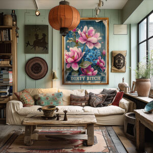 Perfect for those who appreciate a good laugh, this floral poster is emblazoned with “Dirty Bitch” – an eye-catching statement that’s bound to spark conversations and (hopefully) a laugh. Whether you hang it in the kitchen, bathroom, or even your boudoir, it’s guaranteed to add a splash of personality and a whole lot of fun to any space.
