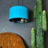 Brighten up your interiors with this refreshing sky blue lampshade with Midnight blue lemur wallpaper lining.