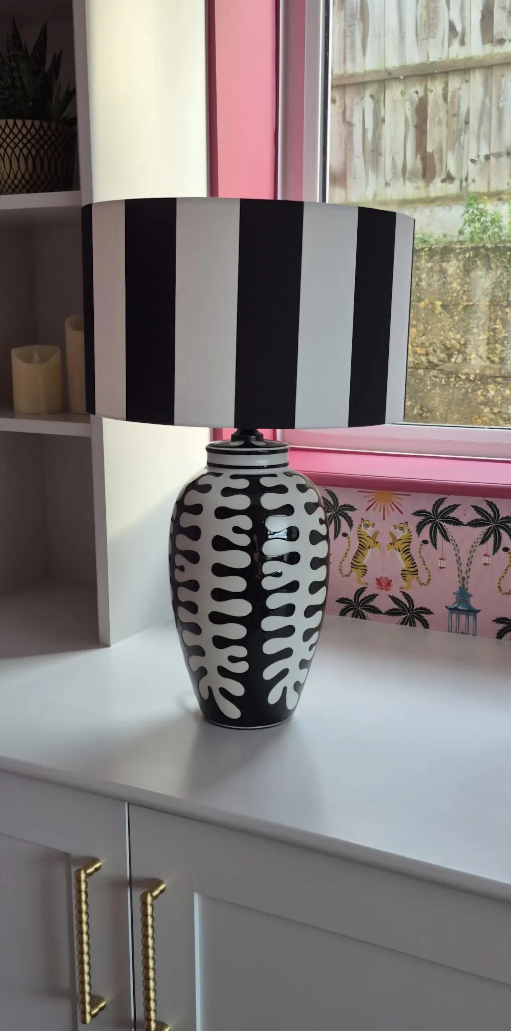 Indulge in the magic of our Beetlejuice vertical Stripe Black and White Lampshades, bringing an enchanting ambiance to your home. Let the light dance through the stripes, casting shadows that add depth and character to your surroundings.