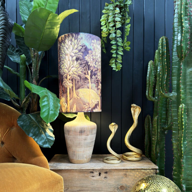 Fire Cracker Midnight Garden Silhouette Lampshade in Butterscotch Velvet & Fringing