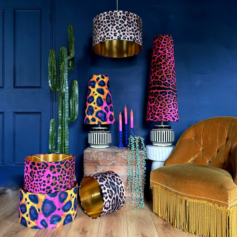 Acid Jungle Lampshade With Gold Lining and Hot Pink Fringing